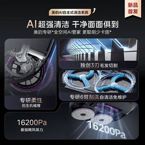 美的V15 Pro以其16200Pa的强劲吸力和AI超强洁净系统,智能避障和从动上下水功能能够削减手动干涉,极大地提高了洁净效率。